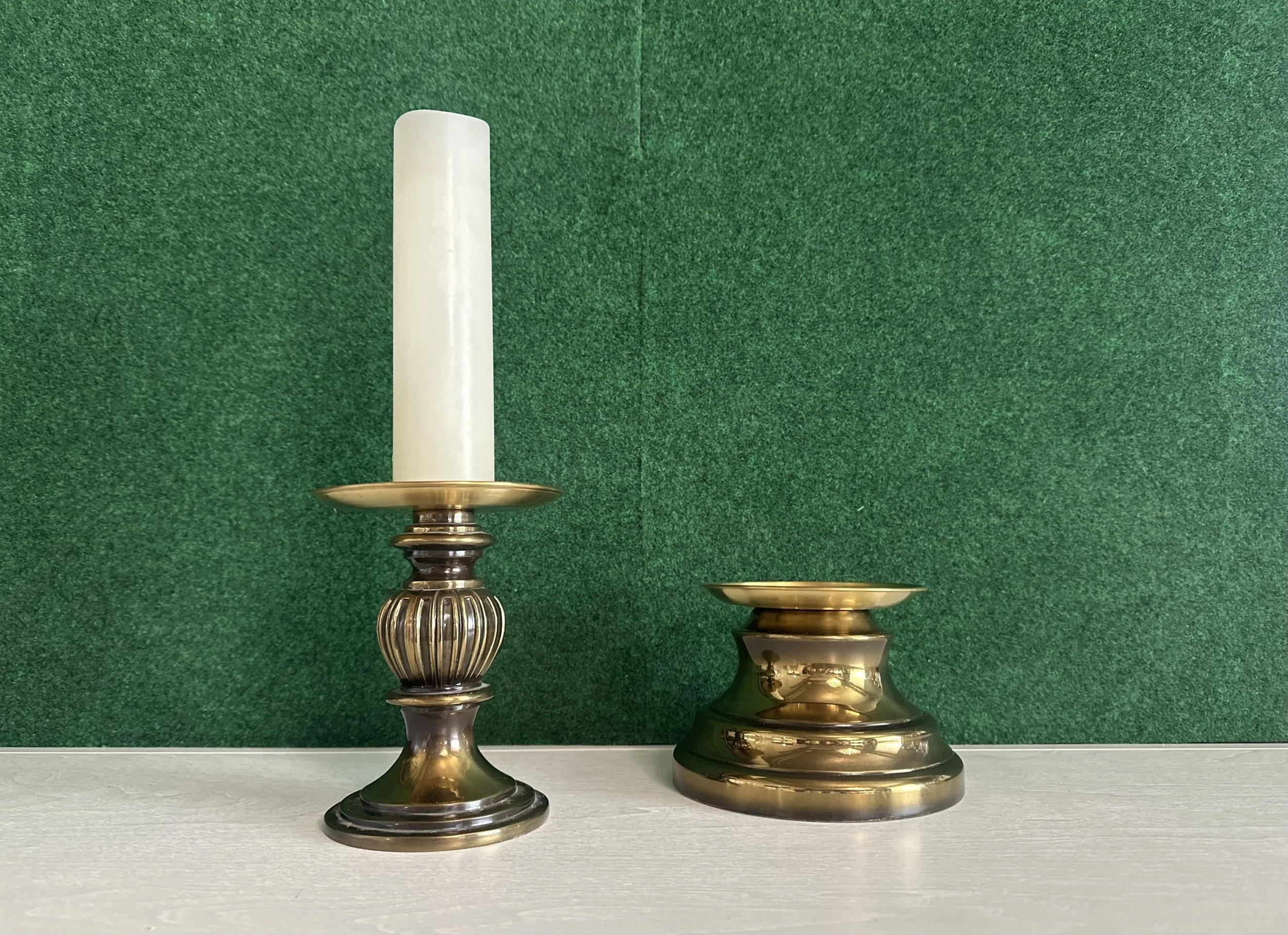 Brass taper + pillar candle holder set