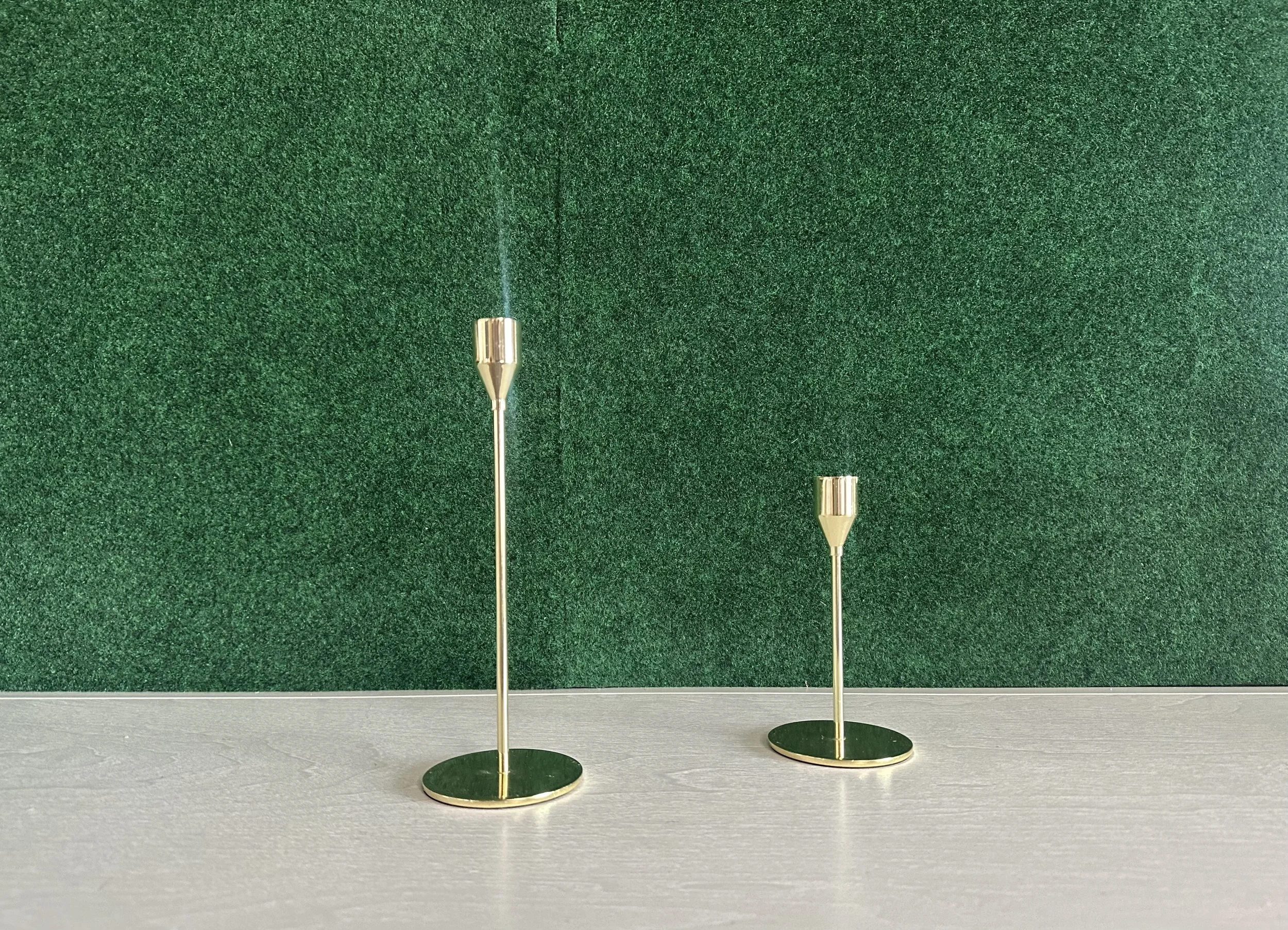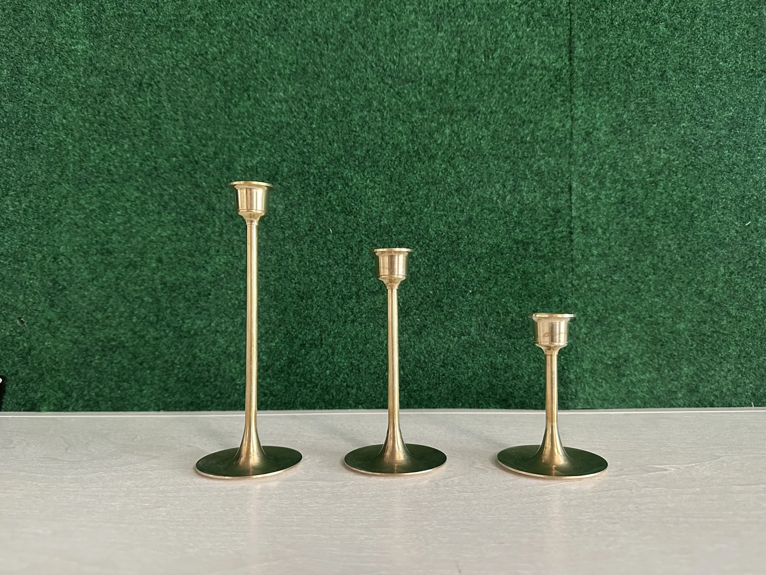 Brass multi size, slender, smooth taper candle holder set
