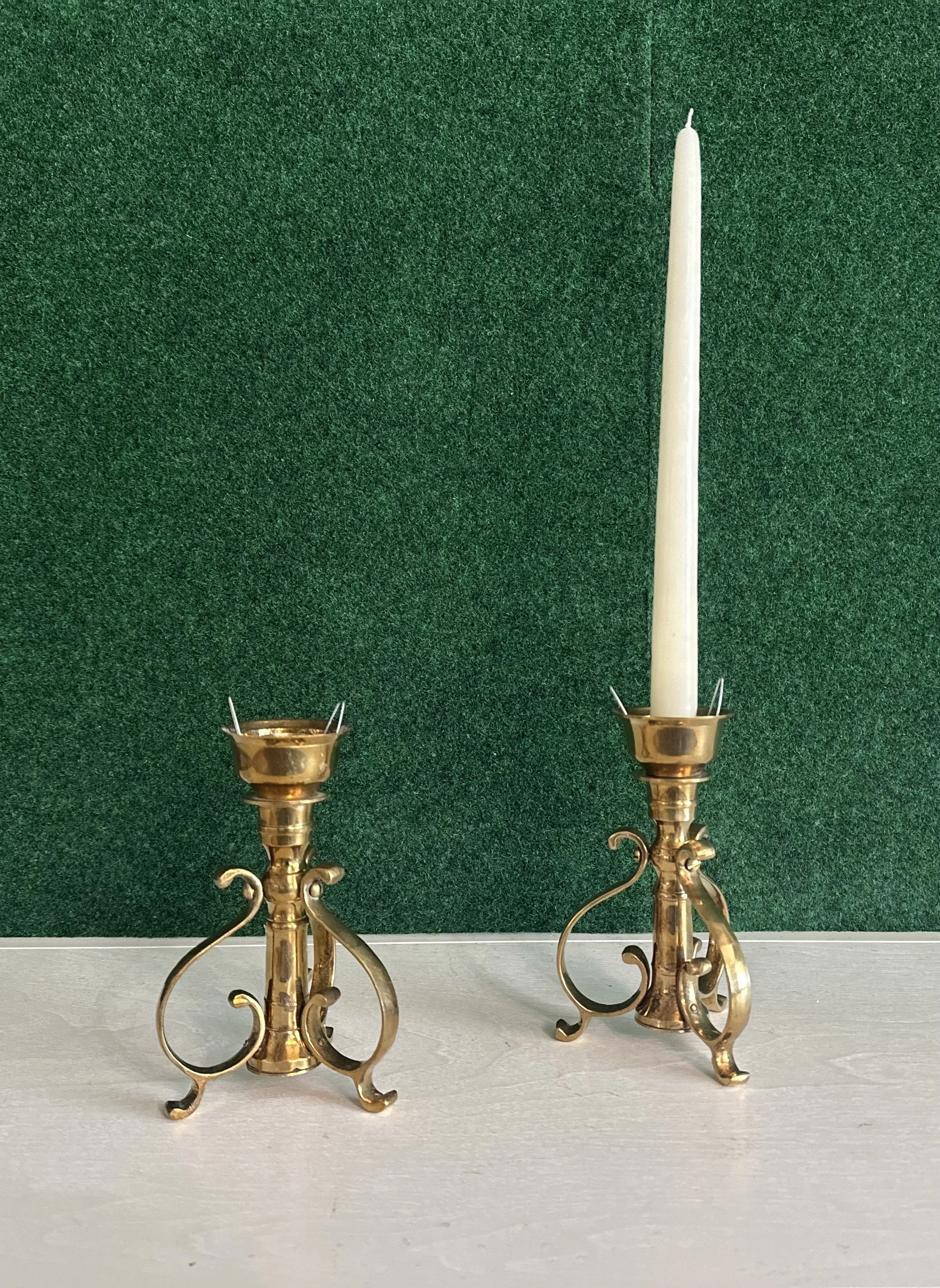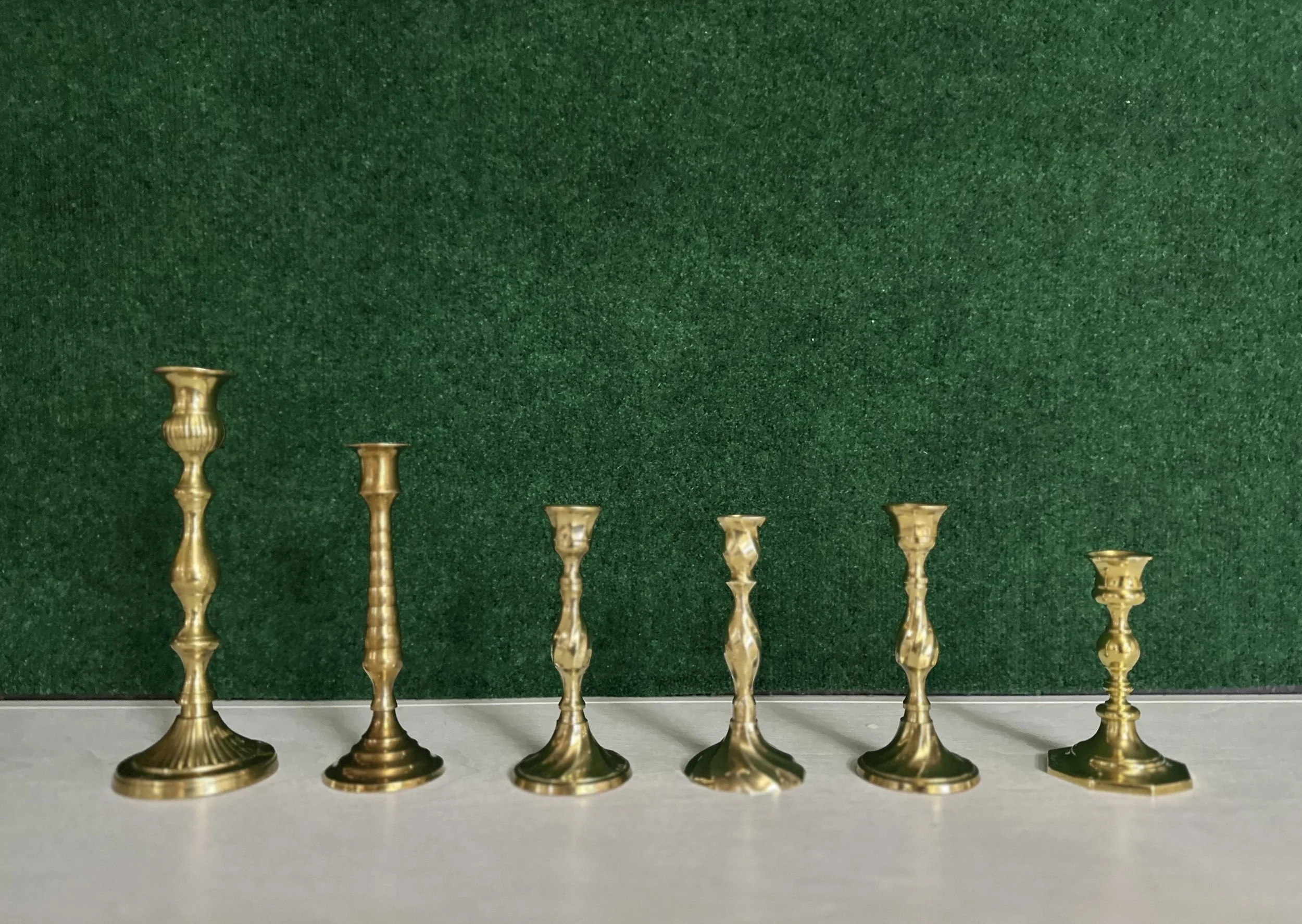 Variety of brass vintage taper candle set