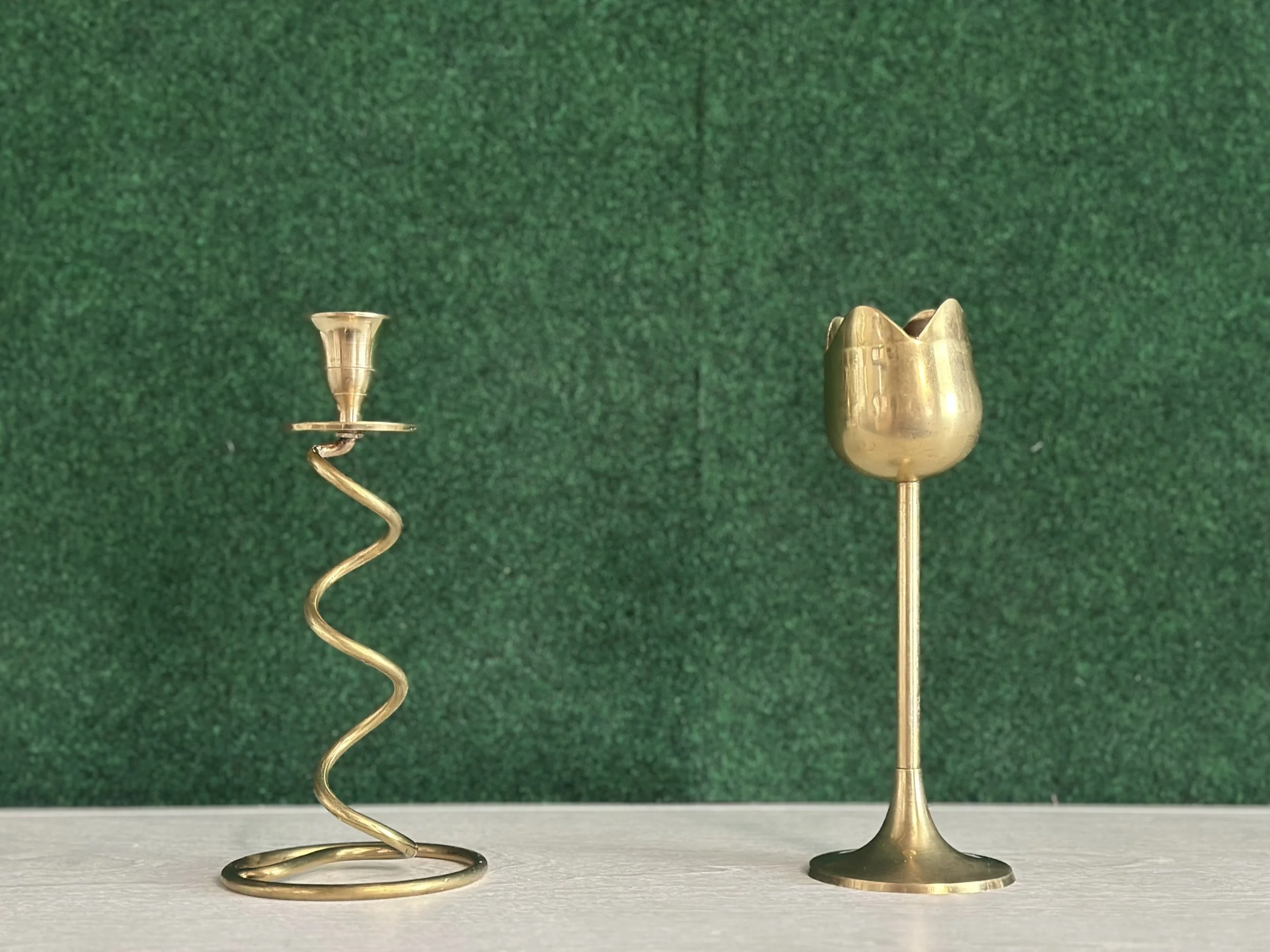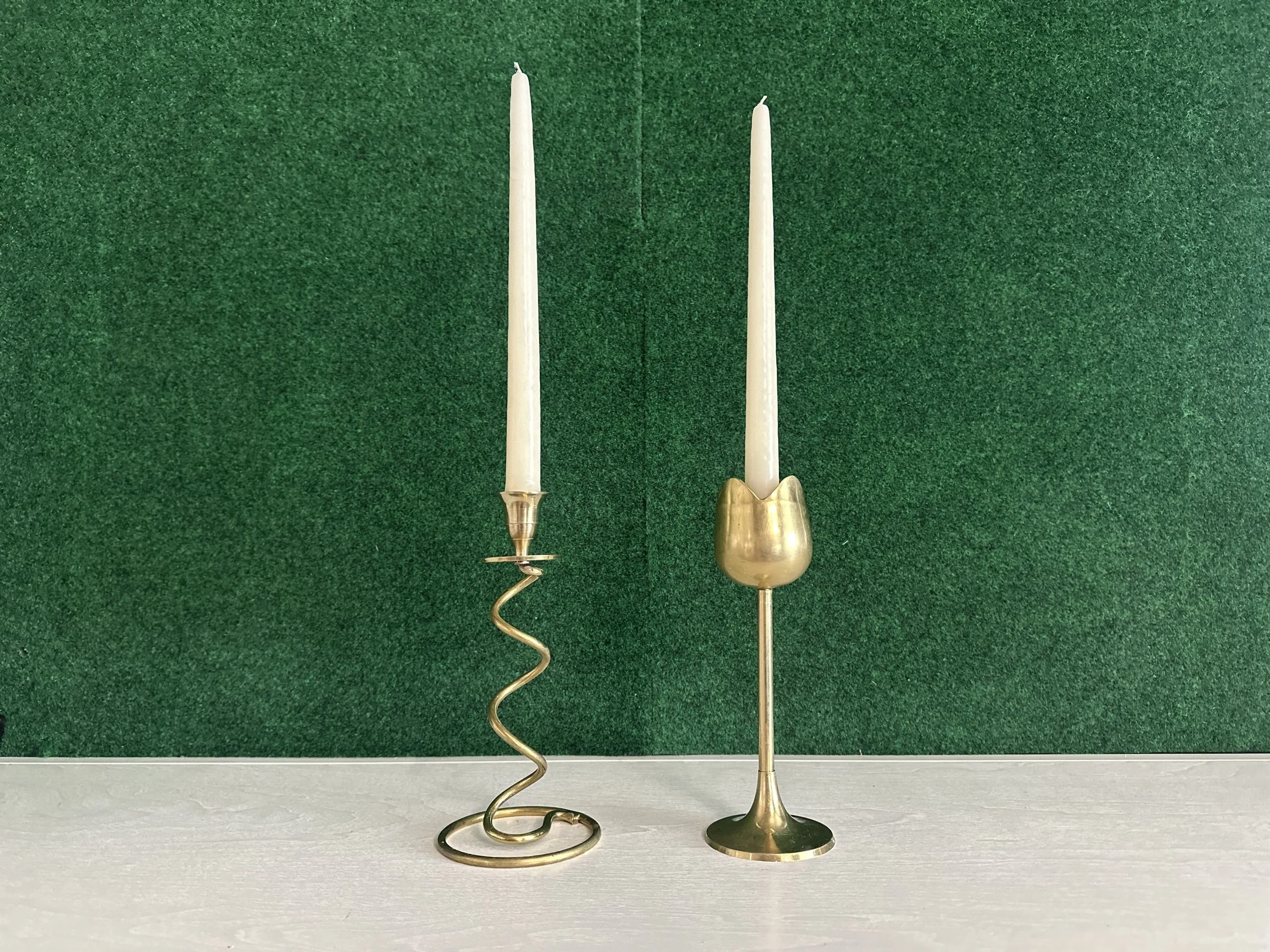 Tulip + curly style taper candle holder set