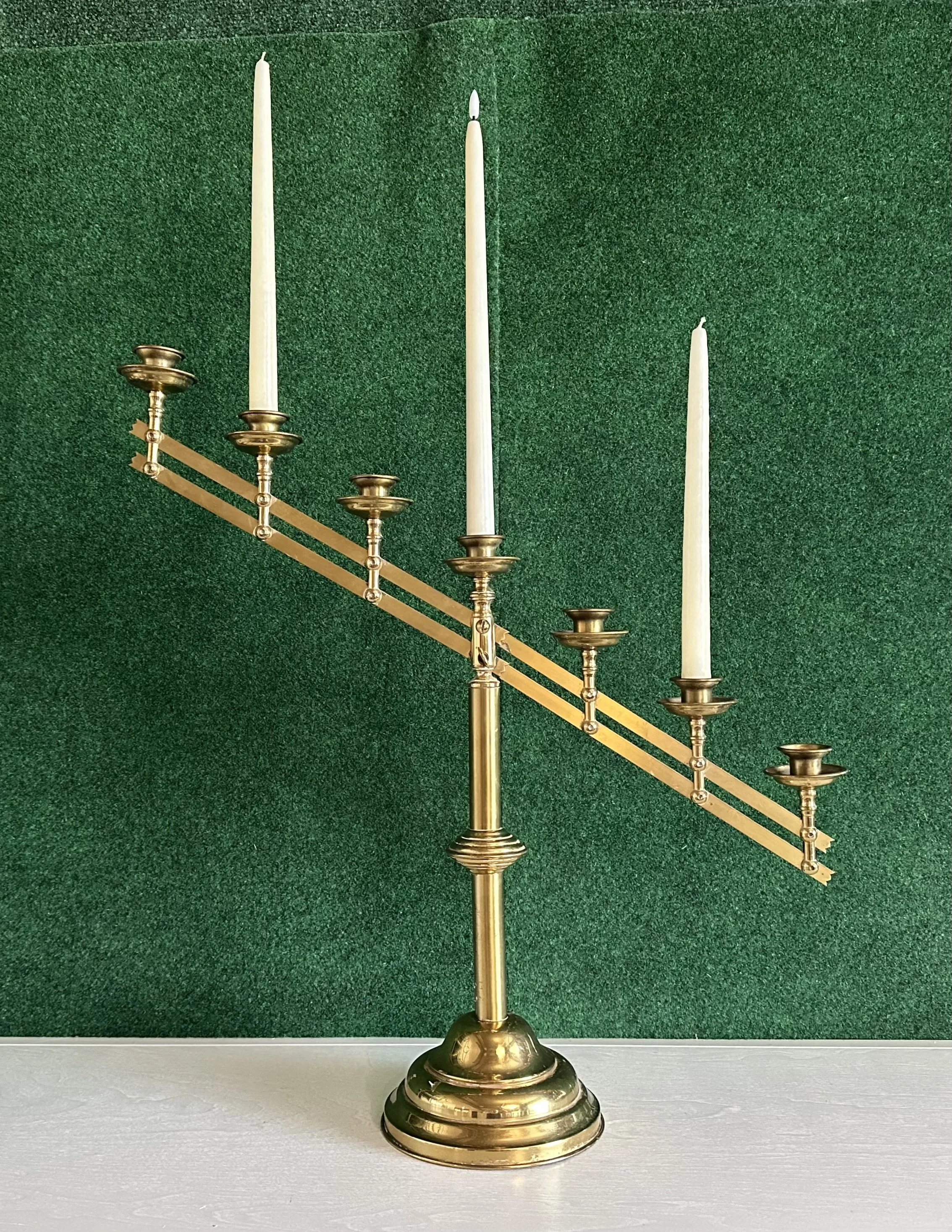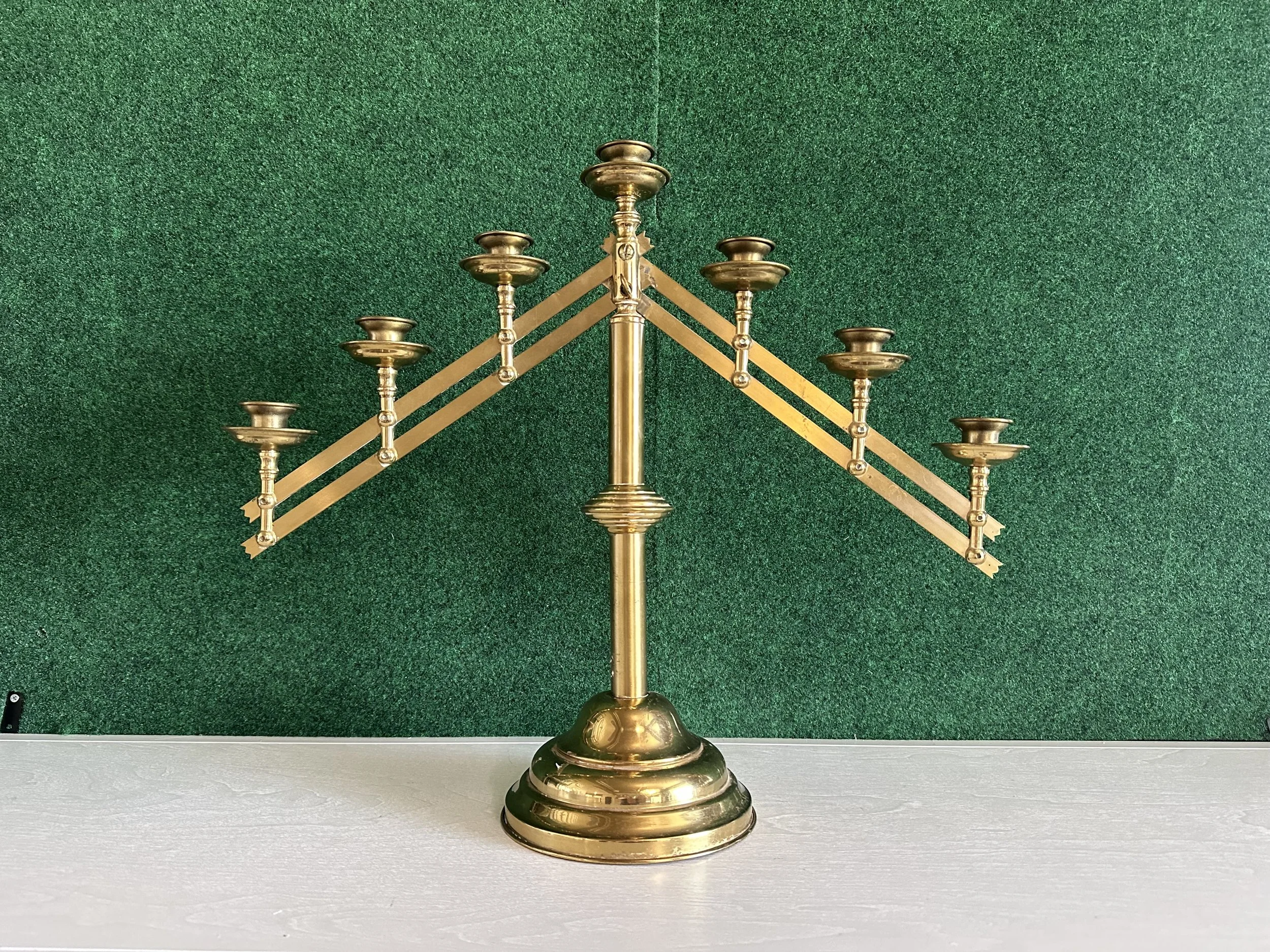 Brass adjustable 7-arm taper candelabra