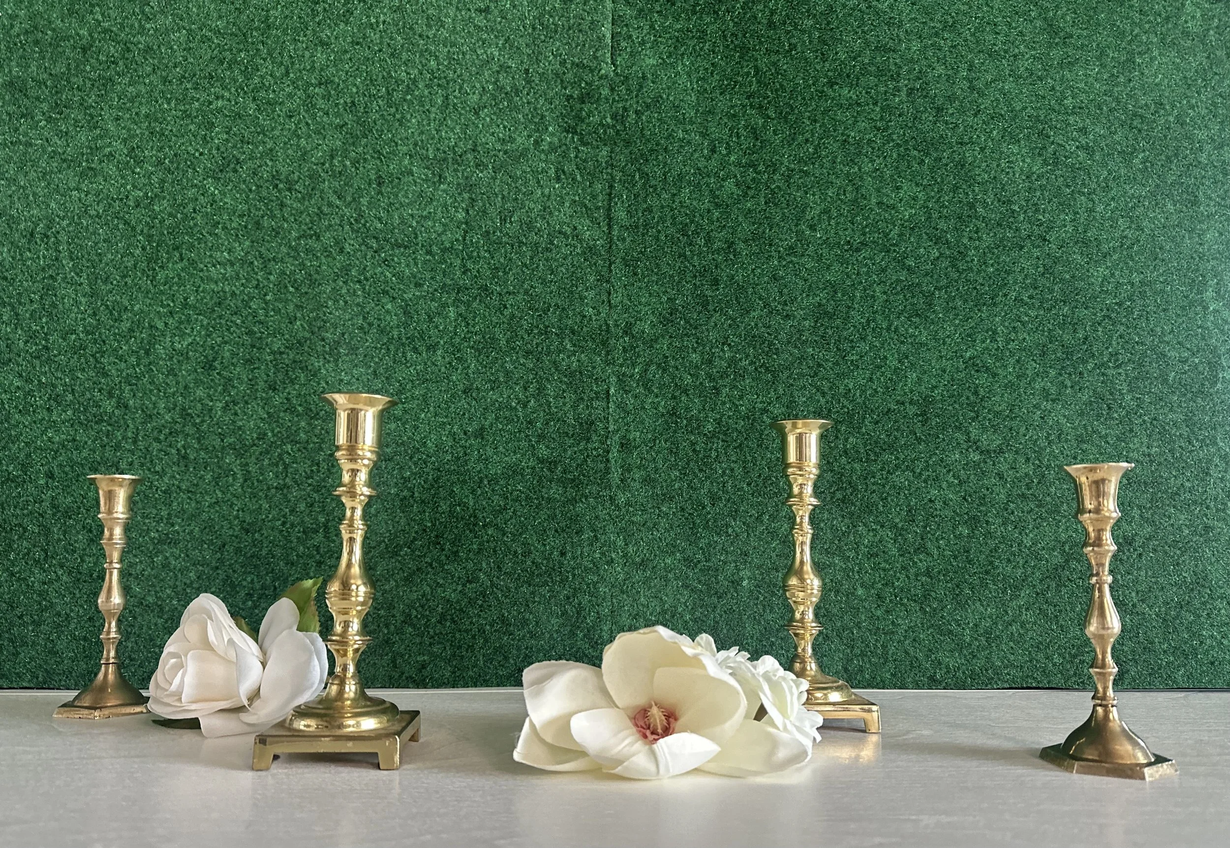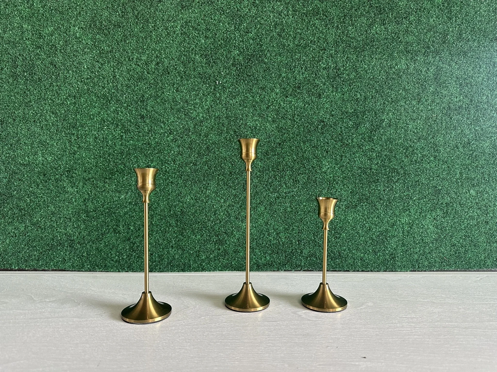 Mix and match charm—this brass candle holder set adds variety to your tablescape with coordinated vintage silhouettes perfect for weddings, parties, and styled shoots.