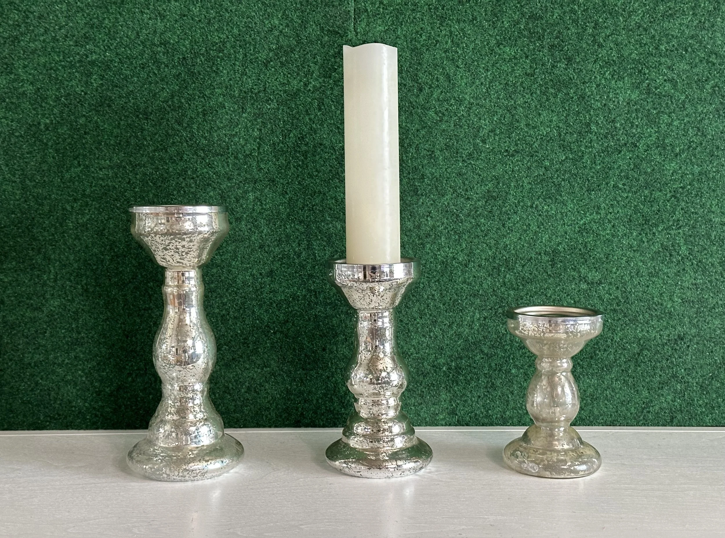 Mercury Glass Pillar Candle Holders - Medium